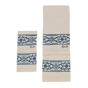 Asciugamano bagno, set viso e ospite stampato a mano con il disegno del periodo Liberty del fiore con riga