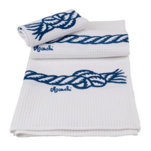 Asciugamano bagno viso e ospite con disegno nodo marinaio