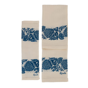 Set Asciugamano viso e ospite realizzati realizzati con tessuto di alta qualitร stirato con il nostro antico mangano del 1633 e sapientemente stampato a mano con il disegno della pigna.