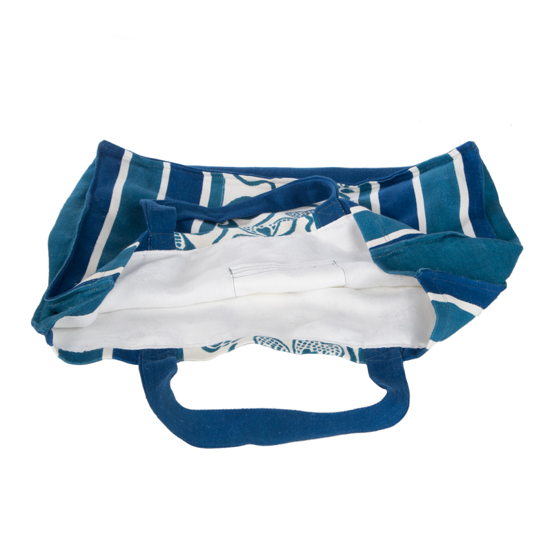 Borsa Mare con fiori dipinta e stampata a mano. Pezzo unico.