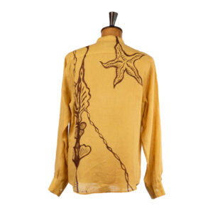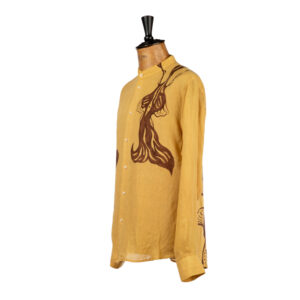 Camicia in puro lino dipinta a mano da Massimo Modula utilizzando i colori naturali realizzati in bottega seguendo la stessa ricetta che dal 1633 è stata tramandata segretamente di padre in figlio.