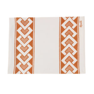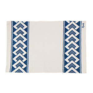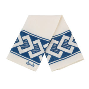 Canovaccio realizzata con tessuto stirato con il nostro antico mangano del 1633 e sapientemente stampato a mano con il disegno del periodo futurista dei Rombi.