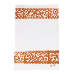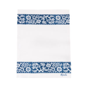 Canovaccio realizzata con tessuto stirato con il nostro antico mangano del 1633 e sapientemente stampato a mano con il disegno del fiore del radicchio stampato in negativo.