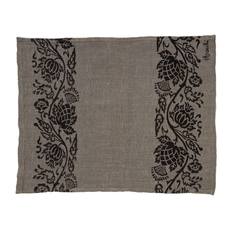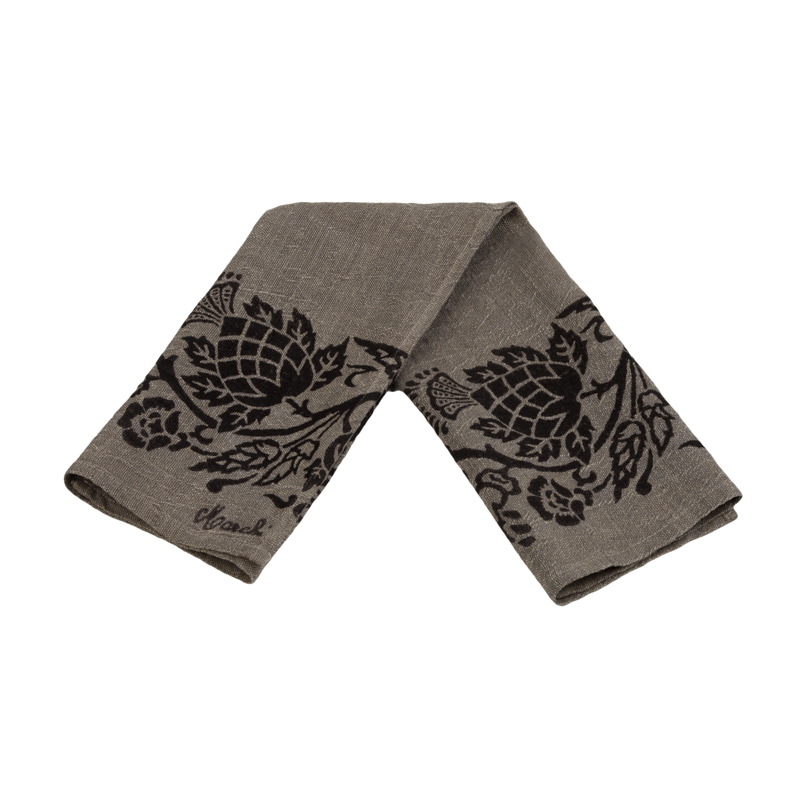 Canovaccio in puro lino natte sapientemente stampato a mano con il decoro del Fiore del Cardo.