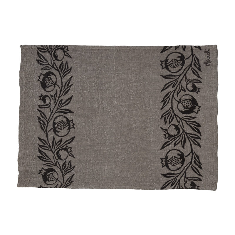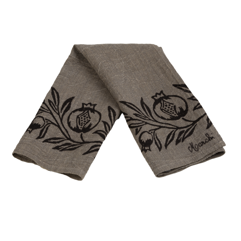 Canovaccio in puro lino nattรจ sapientemente stampato a mano con il decoro del Melograno.