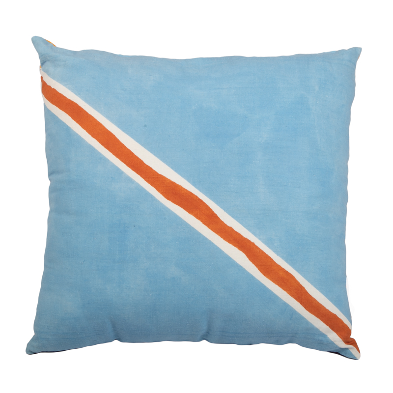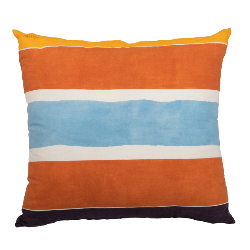 Cuscino 65x68cm realizzato con federa in tela antica tessuta a mano al telaio, pura canapa, dipinta a pennello da Lara Marchi completo di interno imbottito.