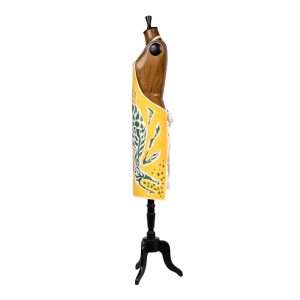Grembiule in puro cotone con pettorina e due tasche con drago verde dipinto a mano da Massimo Modula.
