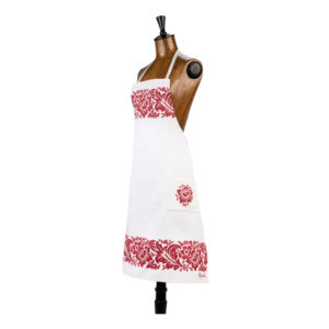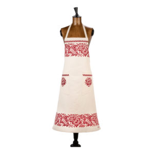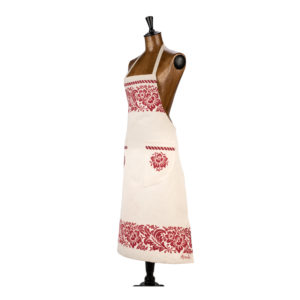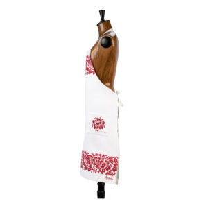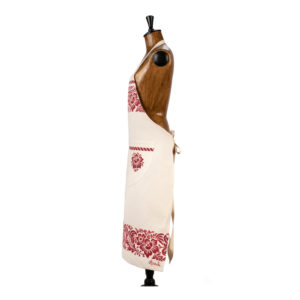Grembiule con pettorina e due tasche sapientemente stampato a mano con il disegno del fiore.