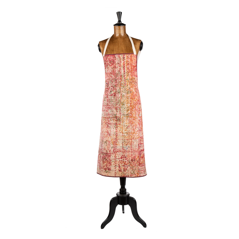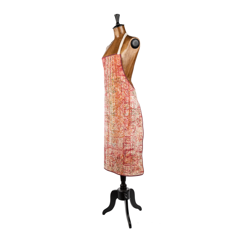 Grembiule in puro cotone con pettorina 96X70 realizzato con tessuto stirato con il nostro antico mangano del 1633 eย stampato a mano con una tecnica unica denominata “Arte Spontanea”