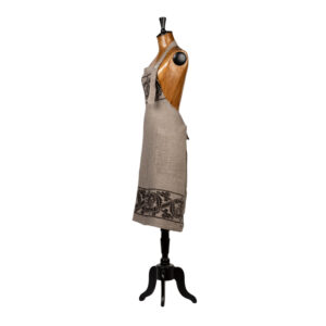 Grembiule in puro lino nattè con pettorina e una tasca laterale sapientemente stampato a mano con il disegno del nodo d’amore dei Malatesta.