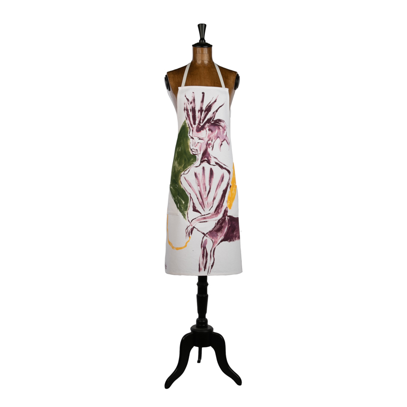 Grembiule in puro cotone con pettorina e due tasche dipinto a mano da Massimo Modula “L’attesa”.