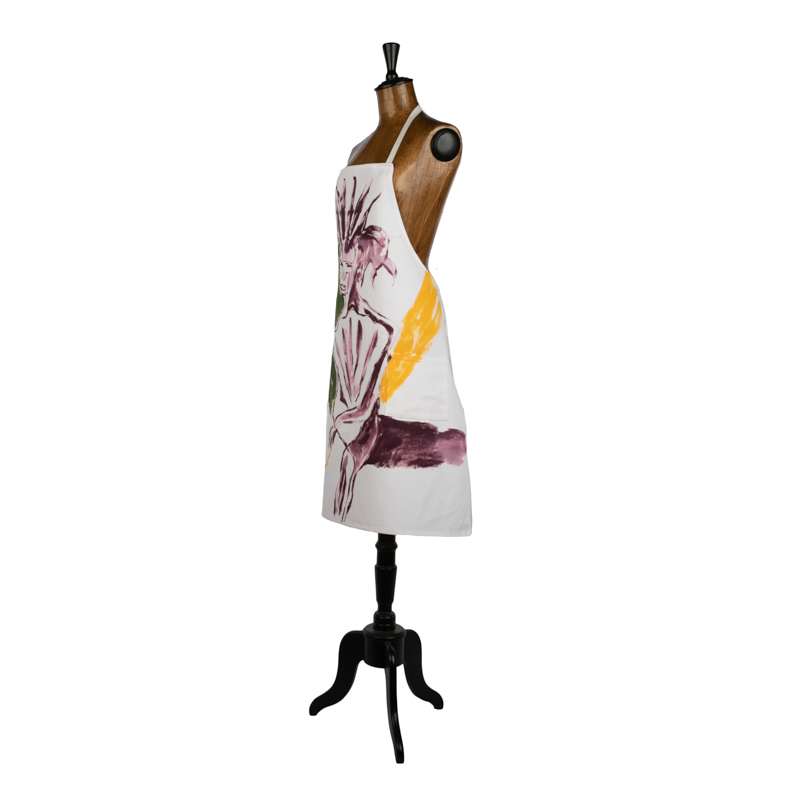 Grembiule in puro cotone con pettorina e due tasche dipinto a mano da Massimo Modula. Pezzo Unico.
