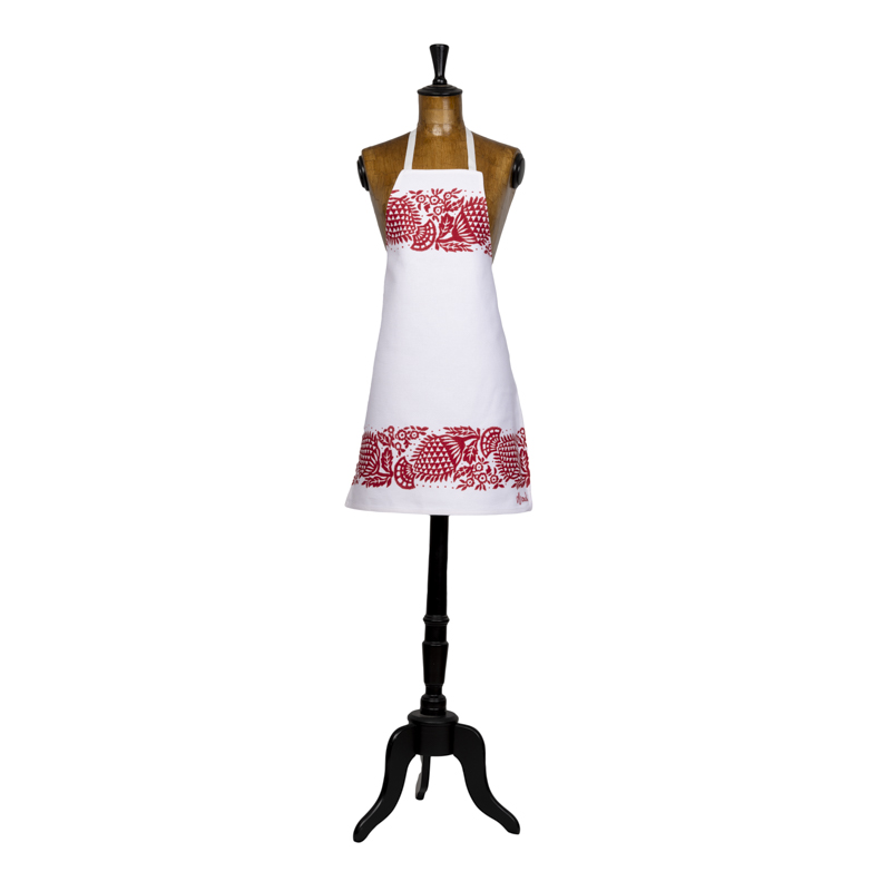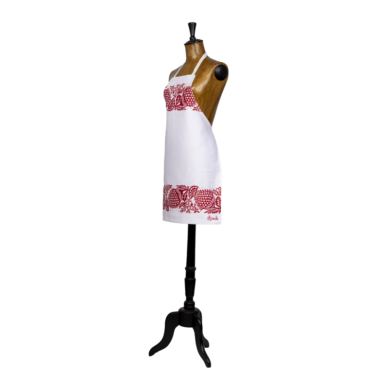 Grembiule medio con pettorina senza tasche, sapientemente stampato a mano con il disegno della Pigna.