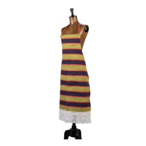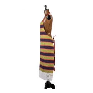 Grembiule con pettorina e tasca centrale a righe. Pezzo unico
