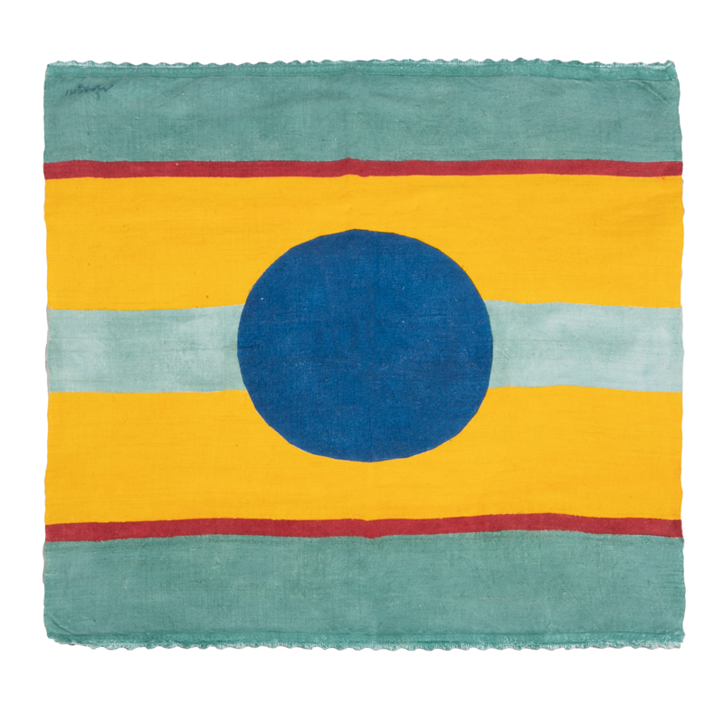 Centro tavola 72x67cm in tela antica tessuta a telaio e dipinto a mano a pennello da Lara Marchi.