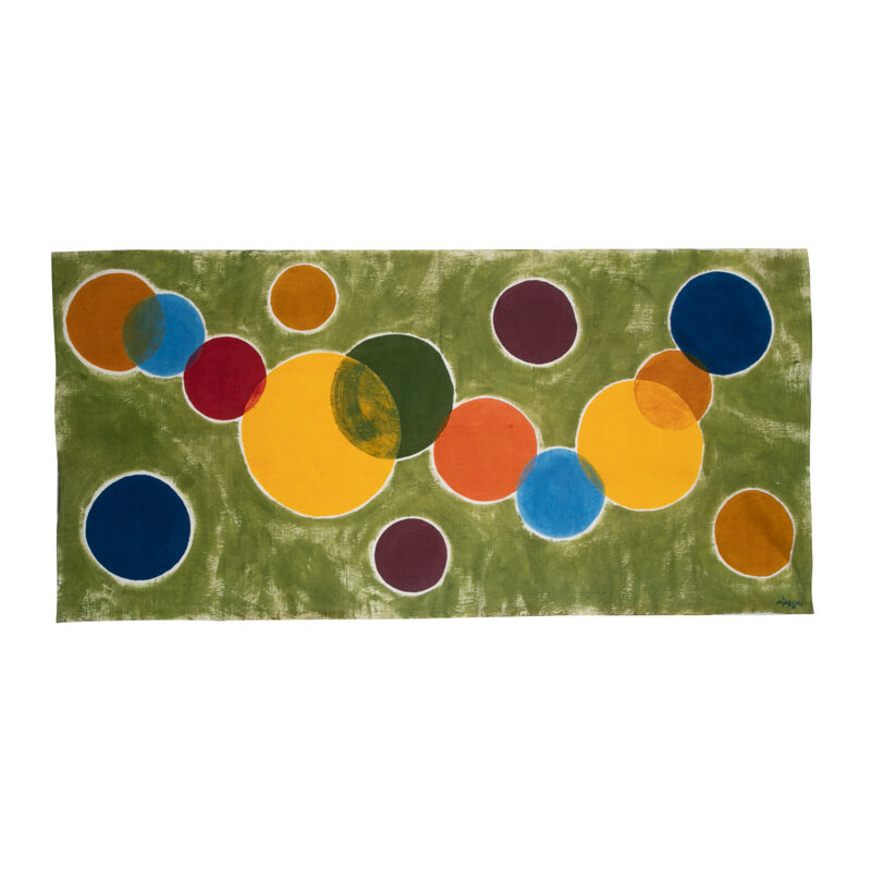 Runner 150x70cm in tela antica tessuta a mano a telaio, pura canapa, dipinto a mano a pennello da Lara Marchi.