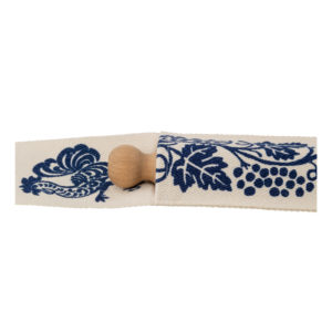 Porta mattarello realizzato con tessuto di alta qualitร stirato con il nostro antico mangano del 1633 e sapientemente stampato a mano con il disegno del uva.