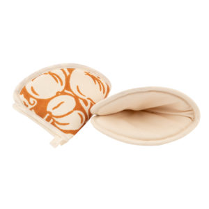 Presina a cappuccio realizzata con tessuto di alta qualitร stirato con il nostro antico mangano del 1633 e sapientemente stampato a mano con il disegno della Frutta in negativo.