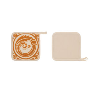 Presina quadrata realizzata con tessuto di alta qualitร stirato con il nostro antico mangano del 1633 e sapientemente stampato a mano con il disegno del Nodo d’amore dei Malatesta.