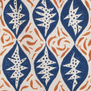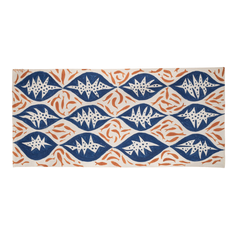 Runner in misto lino con disegno dei pesci dipinti a mano da Massimo Modula