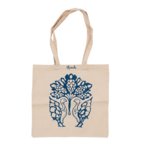 Shopper in puro cotone robusto stampata a mano con il disegno antico dei pavoni
