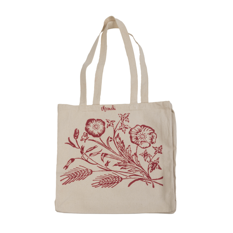 Shopper in puro cotone stampata a mano con Papaveri e spighe.