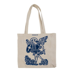 Shopper in puro cotone stampata a mano con San Michele Arcangelo.