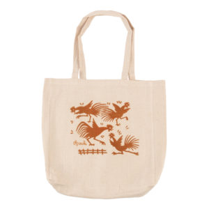 Shopper in puro cotone stampata a mano con il disegno del Galletti che si azzuffano.